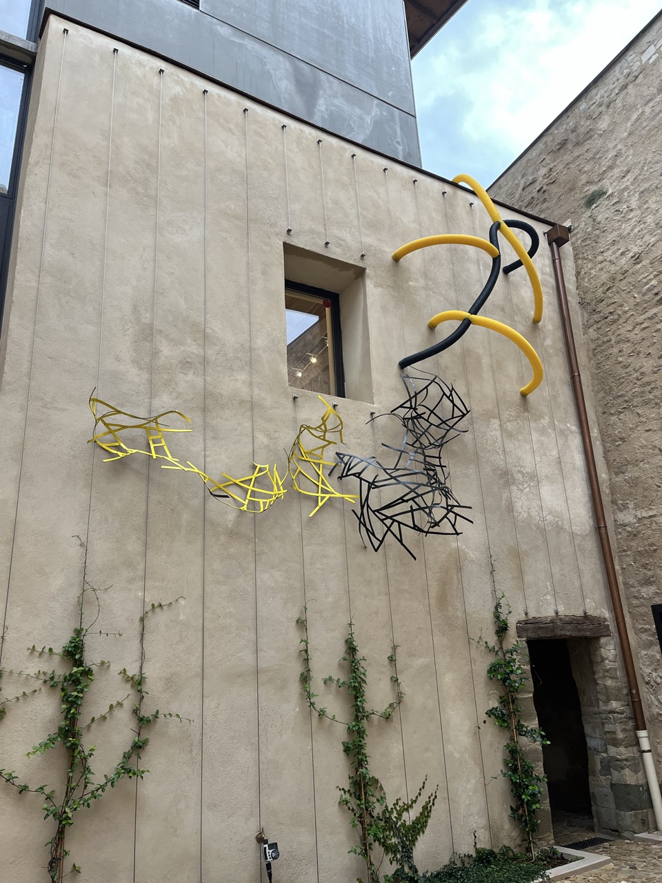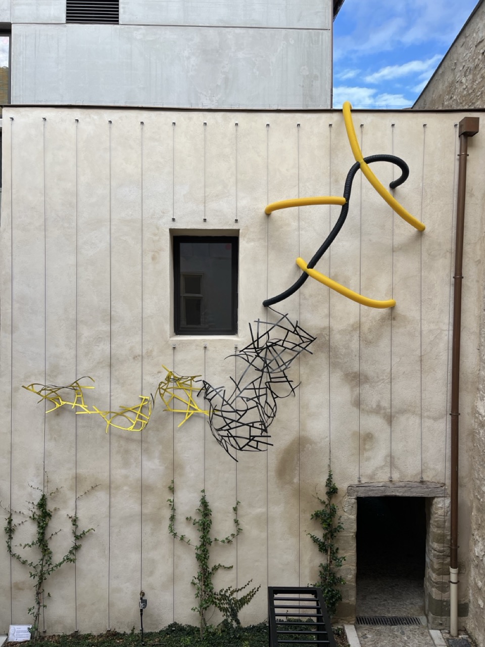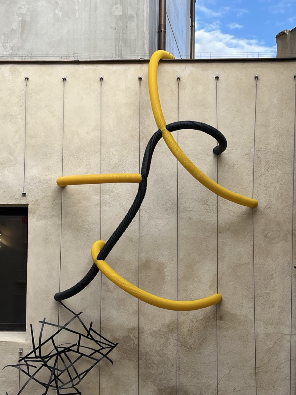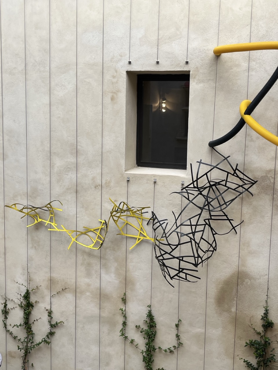 This work brings together several industrial materials that recurrently appear in my practice. Displaced from their conventional uses, they are shaped into organic formations that suggest a living presence, entering into dialogue with the surrounding space.